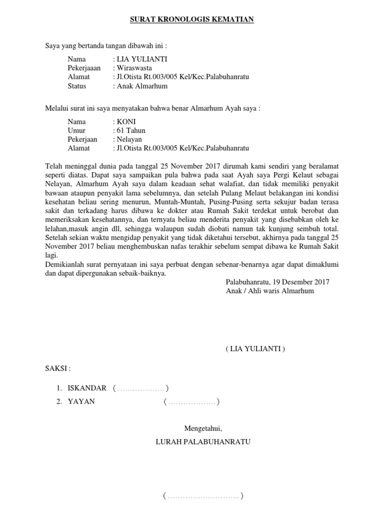 Contoh Surat Kronologis Kematian Untuk Asuransi Pdf